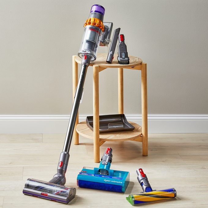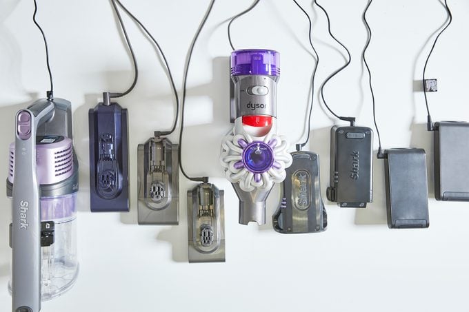 Another thing to consider is that none of the Dyson vacuums we tested can stay upright on their own for storage without using the special wall-mount device that comes with them. That means if you can't install the wall-mount, you'll need to store your vacuum either lying flat or leaning against a wall.