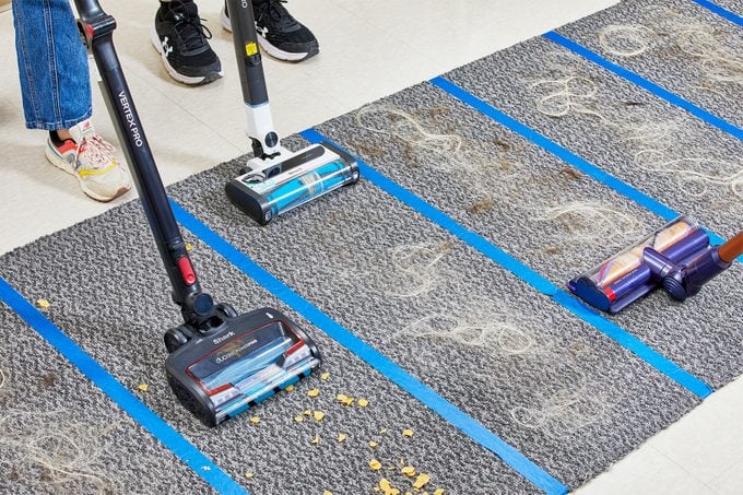 We put each vacuum to the test again by scattering hair, cornflakes, and glitter on vinyl floors, medium-pile carpet, and high-pile carpet. While all the models did a great job of sucking up glitter and hair from carpets in just three passes, the results were inconsistent with cereal, especially on vinyl floors. During our testing, some models just moved the cereal around, while others didn't pick up any unless the vacuum was placed directly on top of it. The only exception was the Gen5outsize, which was able to crush the cereal and then suck it up. "For large debris, rely on the Gen5outsize," advises the Product Testing Team.