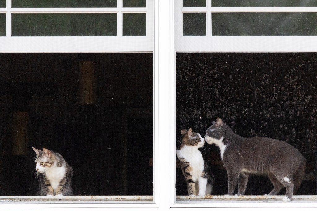 The terrified kittens, observed scratching at the windows from within the home on Saturday, were apprehended by animal rescuers. They showed off their bruised and cut palms as evidence of just how frantic the cats had been.