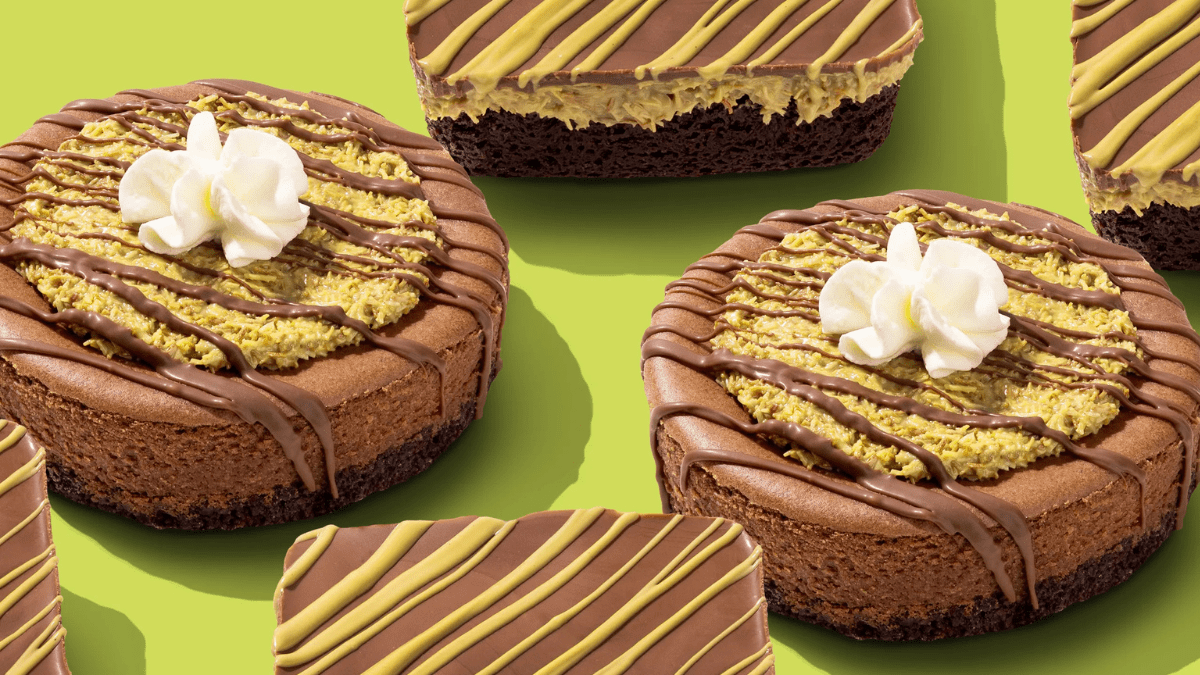 - Dubai Chocolate Cheesecake - Includes a chocolate cheesecake set atop a chocolate graham cracker base. This cheesecake is garnished with crunchy kataifi and smooth pistachio filling. It’s finished off with a gentle pour of milk chocolate and crowned with a spoonful of whipped cream on top.